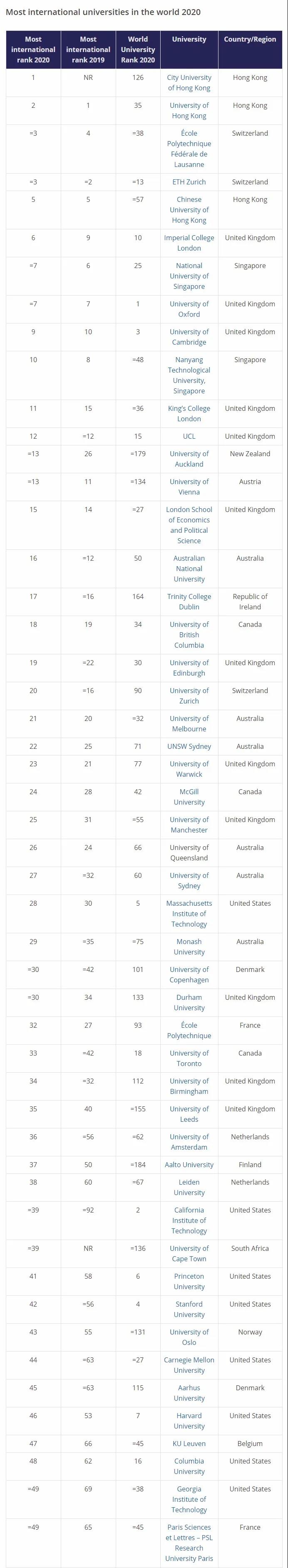近期,THE泰晤士世界大学排名发布了2020年最具国际化大学排名(Most international universities in the world 2020),入围的共有世界各地170所高校。