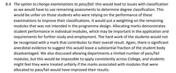 这个不同学校规章不同,很多学校比如KCL等大一的学生考试评定的结果只有pass/fail。但帝国理工学院直接说pass/fail这种评定方式不合适。