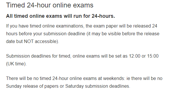 大多数学校都有这个方案,此类考试一般是安排在统一时间线上进行,一般一次性的时长不超过5个小时。需要注意好时差(现在英国是夏令时了!)